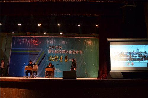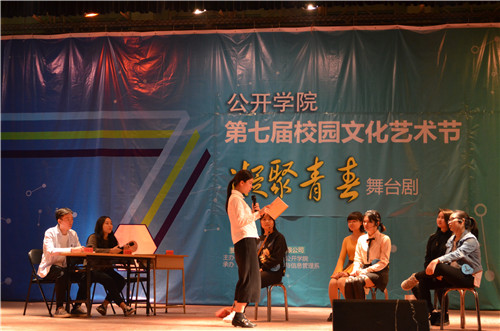 本网讯 继服装作品大赛后,第七届校园文化艺术节“凝聚青春”舞台剧于2016年12月7日晚在公开学院夏茅校区演艺中心举行。出席本次演出的有艺信系主任丁建华,副主任兼团学指导老师张旭新、相关专职教师、辅导员及工作人员。