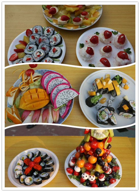 本网讯 12月15日,外语系在校本部举行了水果寿司拼盘大赛。本次大赛的主题为“青春•梦想”,旨在活跃校园气氛,体现大学生的朝气蓬勃,积极向上的精神状态,培养同学们的创新思维。出席本次大赛的评委为各系团学主席团代表以及我系第十届主席易健彬、生活部部长杨圣莹和生活部副部詹祯祺。