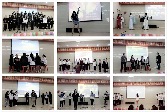 接着,参与本学期第二课堂活动的同学们和指导老师一起,以合唱、喜剧、舞蹈、小品、朗诵、时装秀等形式为大家呈上一场视听盛宴。表演在大合唱《小幸运》中拉开序幕;热舞《Dancing blow》激情四射,引爆全场;《穿越时空的爱恋》充满浓郁的童话气息,台下师生笑声阵阵;阿卡贝拉无伴奏合唱《cups》、《海阔天空》以和谐的纯人声合唱,媲美乐队伴奏的乐曲;小品《珍惜校园时光》用幽默的方式展示了一个两面课堂,告诫同学们珍惜时光,坚守自己最初的梦想;英文诗歌朗诵《Blowing in the wind》与英文小合唱《Proud of you》向大家展示了诗与歌的精致而空灵之美;《青春飞扬,秀出真我》散发着青春的朝气,洋溢着热情、自信;最后大学预科部全体教师的合唱《团结就是力量》,将整台节目推向了高潮。