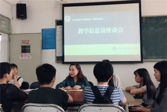 座谈中,周蔚明充分肯定了本学期教学信息员的工作,强调了各班信息员在及时反馈教学信息,促进教学改革与师生交流沟通,加强教学质量监控和对教学督导的力度,保障教学体系建设等方面所起到的不可替代的作用。随后,吴礼威针对任课教师的教学教法、专业的渗透及本学期系部活动开展等做出了反馈。吴灵针对课程设置、教室安排等情况进行解说。教学信息员也对如何有效提高班级出勤率、提高学生学习兴趣提出了自己的建议。