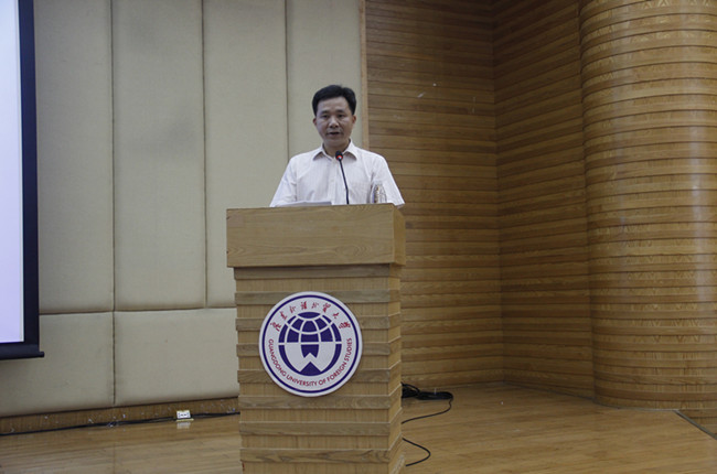 漫天的龙舟水刚刚偃旗息鼓,风清月明的好天气让比赛气氛更为热烈。任跃忠做了开场致词,一口漂亮的英语口语发音为比赛挑起了第一个高潮。任跃忠在致词中说,英语电影配音大赛的举办,不仅可以激发学生英语学习的热情,为学生的英语学习打下基础,同时也为学生展示英语技能提供了一个平台。任跃忠同时也希望在校学生能够珍惜学习机会,不仅学业有成,也能够在广外的全日制学习过程中能够学到各项技能。