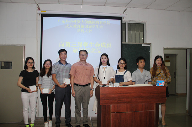 首先,彭陟介绍本次活动领导和嘉宾;接着,成教第三届学生会代表吴佳岚同学对该届学生会工作作了简短的工作总结;随后由张开荣向第三届学生会成员颁发纪念品。