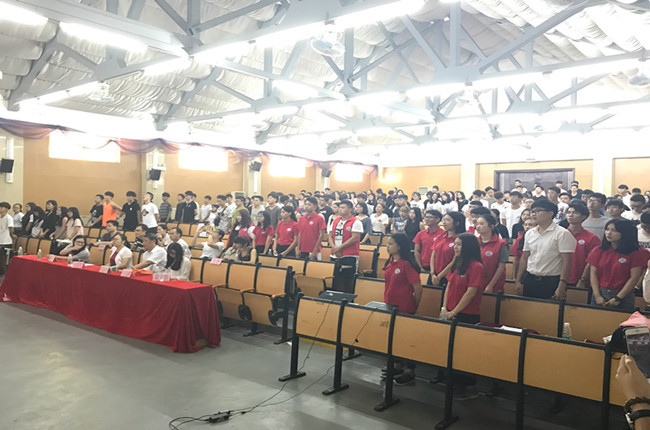 最后在系第八届团总支学生会团委副书记赖粤中同学的带领下,所有新生庄严宣读了新生入学誓词。