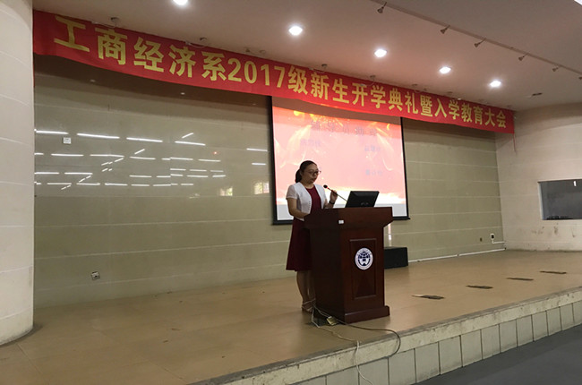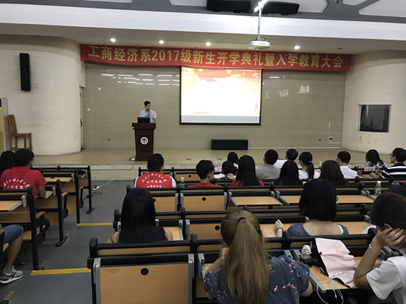 本网讯 金秋时节,丹桂飘香,荷花满塘,充满活力的广外公开学院校园迎来了2017级新同学,一个个新鲜的面孔让校园注入了许多新鲜血液,显得更加生机勃勃。9月15日下午两点,工商经济系在学术报告厅举行了“2017级新生入学教育大会”,出席本次大会的有工商系领导、老师及2017届全体新生。