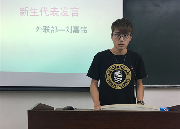 首先,在庄严的国歌后,大会正式开始,先是第十五届主席团讲话,新人新气象,新的主席团提出在新的学期里,要为学院、系里更多的同学做好服务,同时也为团学的同学做好服务,让更多的同学感受到国商系团学这个大家庭的温暖;接着是各部门部长进行部门人员的介绍,通过介绍,让大家之间相互认识,更快的融入到团学这个大家庭中去;接下来是新一届代表刘嘉铭同学、往届代表温慕蕊同学发言,刘嘉铭说到,作为新人,新的血加入团学,希望能给团学带来新的能量,能体现出年轻一代团学人的精神面貌,为国商团学的发展奉献自己的绵薄之力;温慕蕊则说到团学给她带来的很多欢乐和泪水,在团学大家庭里,让她成长了许多,学到了许多课外知识,在为广大师生服务时,让她增强了责任感,是她成长之中一笔难得的财富。