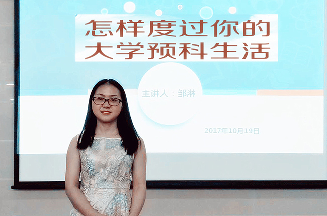 本网讯 为了让同学们更好地了解大学预科生活,明确自己的目标和方向,10月19日19:30,公开学院大学预科部在学术报告厅举办了“怎样度过大学预科生活”的讲座。本次讲座由大学预科部教学教研办经管教研组组长邹淋老师主讲。