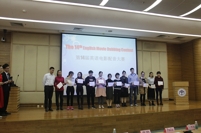 整场比赛如火如荼、欢声雷动。由来自A0202的选手黄文仪、王婉、何杭娟、黄昭伪带来的《疯狂动物城》拉开序幕,选手的声情并茂的表演赢得了观众的阵阵掌声。来自第十二组的选手侯自宁、许方源、赵佳鑫和张高瑗在完全脱稿的情况下,以半演半配的方式演绎了经典电影《沉睡魔咒》,获得了观众们的啧啧赞叹。在两个小时的比赛中,观众们享受了一场视听盛宴,在比赛的最后,来自B02的刘雪冰、周海密、向佳伟带来的《神偷奶爸》在一众优秀作品中脱颖而出,勇夺第一。