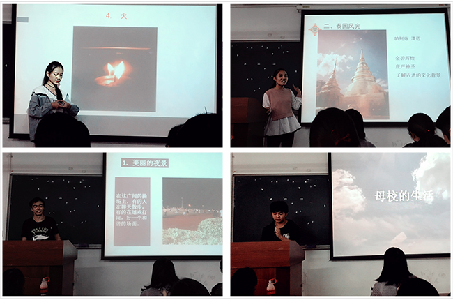 比赛中,14组选手分别用PPT展示他们的营销策略,图文创意及采取的宣传方式,并陈述其作品文案设计理念。有丰富多彩的课外活动、有优美的校园景色、有风光旖旎的异域风情……参赛作品构思新颖、设计精心、主题鲜明、图文并茂、富有创意,充分体现了参赛选手的专业实践能力。