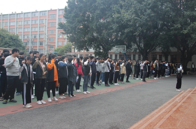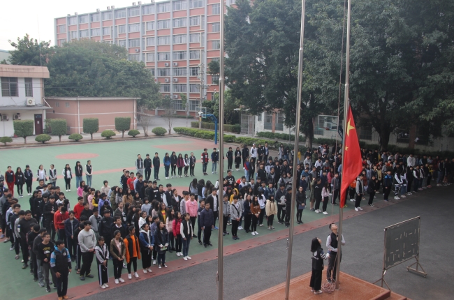 冬季早已到来,但预科部的同学不畏严寒,陆续来到篮球场,并有序地排队,抬头挺胸,等待国歌响起、五星红旗飞扬。7:30分,伴着《义勇军进行曲》,全体唱国歌、行注目礼,庄严肃穆。