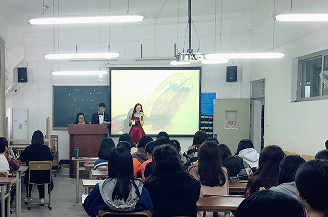 本网讯 12月11日下午,公开学院大学预科部在三教401举行了第六届双语才艺大赛。本次比赛共有七组作品进入决赛,参赛选手是来自英语才艺和日语才艺兴趣小组的学生。大学预科部英语及日语专职老师担任本次比赛评委。评委老师们从参赛选手语音语调,团队合作精神,舞台表现和才艺展示等方面对每一组参赛作品综合评分。