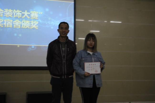 随后,胡亚玲宣读了表彰文件,与会领导为“文明宿舍”代表及“宿舍装饰设计大赛”获奖宿舍颁发了荣誉证书和奖品。最后获奖宿舍代表上台与大家分享了他们在宿舍装饰大赛中的设计理念及心得体会,他们利用PPT展示宿舍装饰的效果图片,主题鲜明并配以生动幽默语言,引发了在场师生阵阵掌声,让大家深受启发。此次表彰大会进一步增强了同学们塑造良好生活环境的观念,也调动了广大学生参与宿舍文化建设的积极性,充分展现了公开学子的精神风貌和宿舍风采。