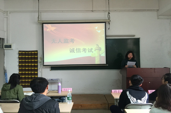 2017级商务英语本科2+2卓越1班的同学用诚信为文明、公平的考试环境做出了示范作用,此次“无人监考•诚信考试”活动圆满结束。