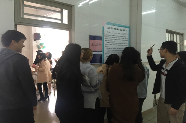 本网讯 1月4日上午,我院外语系积极响应学院“无人监考•诚信考试”工作的开展,甄选了2017级商务英语本科2+2卓越1班,作为试点班级进行了以“无人监考•诚信考试”为主旨的期末考试。2017级商务英语本科班的同学对于此次活动,给予了积极的响应,并用实际行动支持此次活动,在《“无人监考、诚信考试”考生承诺书》上庄严签上自己的名字。