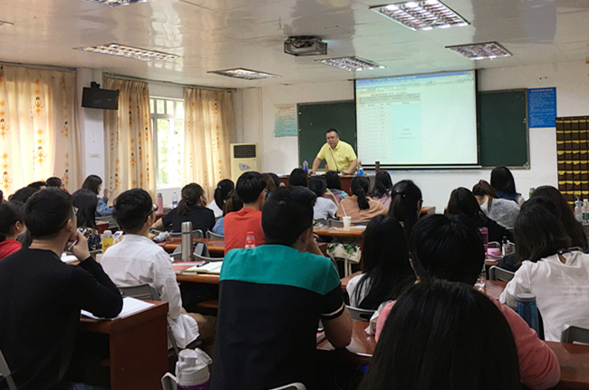 本网讯 3月31日下午,中国平安广州电销中心班(以下简称:平安班)学生毕业论文指导讲座在北校区第三教学楼220课室举行。本次讲座由彭陟主持,出席的领导嘉宾有国际商务系系主任兼论文导师杨妙新,以及“平安班”全体毕业生。