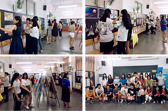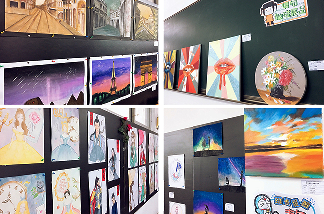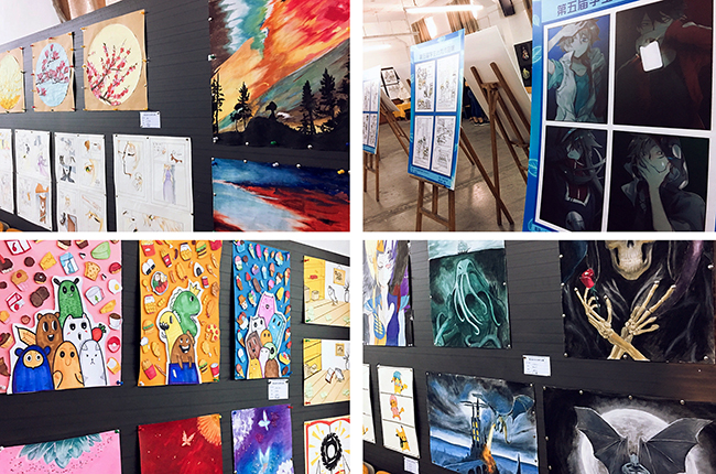 展览现场共展出优秀学生作品180余幅,作品题材广泛、形式多样,涵盖了插画、素描、设计、服装效果图、动漫、书法等多种艺术表现形式,其中16级预科艺术方向学生优秀作品150余幅,四月份主题月活动“师生读书分享月”系列活动之“读书笔记摘抄硬笔书法比赛”及五月份主题月活动“第七届英语才艺展示月”系列活动之“英语书法比赛”优秀书法作品30余幅。