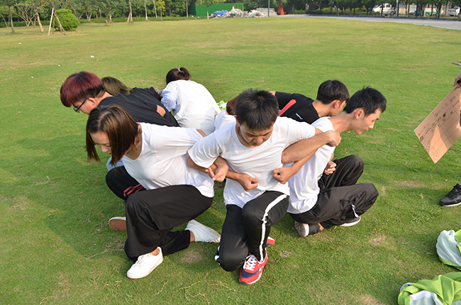 接下来就是游戏环节,各队伍分别有“翻幕布”、“坐地起身”、“五毛一块”、“四人五足”项目,其中在“坐地起身”游戏中在慢慢增加人数时,有着不少队伍面临着大型“翻车”现场,手使不上力和体重限制等原因导致惨重的落败。“五毛一块”游戏中,男生为一块,女生为五毛,当指挥官喊出一个数字时,所有人报团凑数来完成相应数值。在凑数的过程真的是人仰马翻,反应迟钝的小伙已经早早被遗弃在一边。