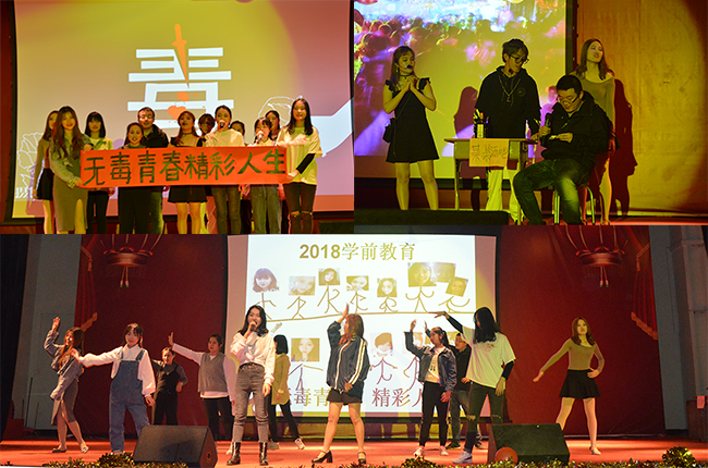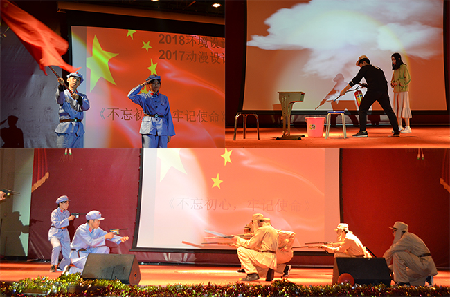 晚会在吉他协会双人抒情演奏中拉开序幕。本次舞台剧的参赛队伍共有8支,18级环境设计&17级动漫设计《不忘初心,牢记使命》,让我们牢记自己身上所背负的使命,记得当初自己的梦想,并要脚踏实地为之努力;18级电子商务《我的未来不是梦》告诉我们只要每天努力一点点,就能积少成多,也许在未来的某一天梦想就会成真;18级动漫设计《708事件》是一场即酷炫又感动的舞台剧,结合了创意的舞蹈和历史,让我们铭记曾经的历史事件,不忘耻辱,砥砺前行;18级视觉传达1班带来的《初心》提到在成长的过程中,只有不忘初心才能方得始终;2018视觉传达2班《安全无小事》中深情表演宿舍使用高功率电器,导致起火,告诫学生,火不留情,小小的电器一个不留神就会引来一场火灾,禁止在宿舍使用大功率电器;18级计算机应用技术班带来的《抵制校园贷》告诫大家要树立正确的消费观,量入为出,适度消费,不要在校园贷的边缘试探。