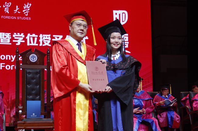 12月27日下午,广东外语外贸大学在北校区云山会堂隆重举行2018年冬季学位授予仪式。我院244名学子亲临现场,上台接受校长的拨穗正冠,领取学位证书。在参加本次学位授予中,吴海兰、卢侣青两位学子身份较为特殊,他们是首批“广外-平安”校企合作项目的学员,两位学子求学之路,既体现了“广外—平安”校企合作办学项目的优势,同时也鼓舞人心,更为后面的学子树立榜样作用。
