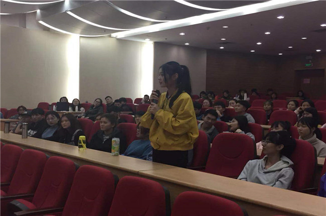 Joshua Isaacs从自身学习中文的经历和多年的英语教学经验分析了日常学习语言的几个有效途径:一、重视阅读,建议学生首先把日常阅读的小说、杂志甚至是购物网站等换成英文版本;二、大量的听力和视听训练,增强语感,学习自然地道的口语。建议学生聆听英语歌曲、观看英语电影、参与英语配音比赛;三、扩大词汇量、积累句型。建议学生多写英文日记及英文邮件,考虑以邮件方式正式跟老师交流;四、善于总结、归类,扩大知识面。建议学生寻找学习伙伴,一起累积总结及练习对话,一起进步。Joshua Isaacs尤其强调,学习英语,除了要培养兴趣爱好,养成用英语思考、随口翻译的习惯,最重要的是要“拉下面子,厚脸皮、大胆开口说。”通过Joshua Isaacs对如何在日常生活中学习英语的分析,同学们深刻领会到要持之以恒,并运用更为有效的学习技巧,才能使学习、生活、工作中的困难迎刃而解,水到渠成。