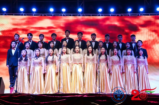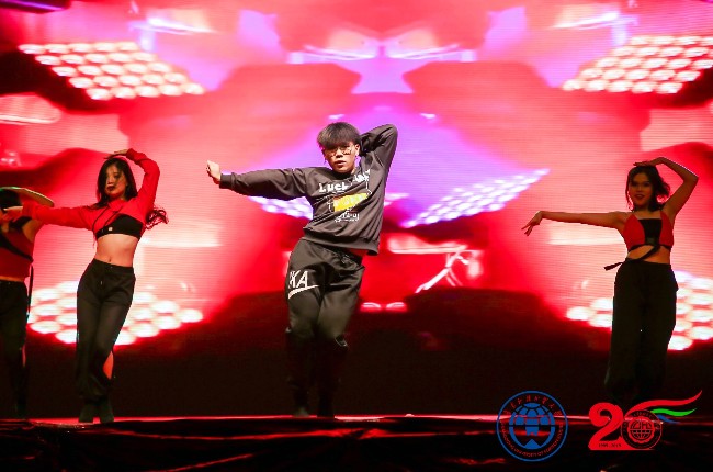 更有特邀嘉宾中国男歌手杨绍奎带来的《窗外》、《朋友》,“懓愔”协会带来的代表和平、团结、友爱的街舞表演。院合唱团一段铿锵有力,振奋人心的大合唱《保卫黄河》,深深地打动全场师生,把整场氛围推向高潮。