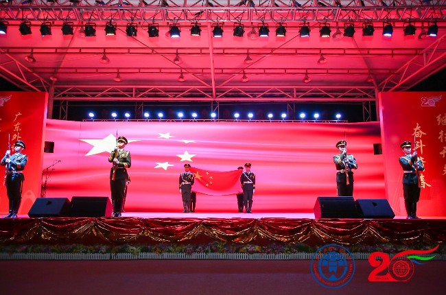 建院20周年,也是新中国成立的70年!70年的风雨同舟,70年的辉煌成就,都让我们华夏儿女感到无比自豪!在这个特别的时刻,伴随着庄严肃穆的国歌和仪仗队出场,20周年华诞晚会正式拉开帷幕。