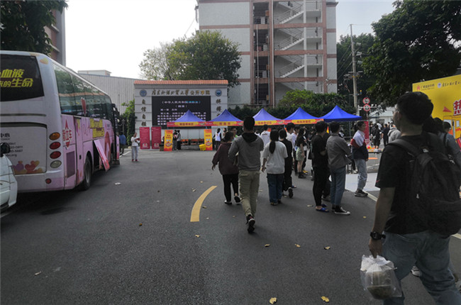 本网讯 11月16日,由我院红十字协会与广州血液中心联合举办的无偿献血活动在白云湖校区举办。此次爱心献血活动得到了广大师生的踊跃积极参与,共计有130多人参加献血。在爱心献血的活动现场,我院党委书记邵兵关心活动开展情况、关怀爱心献血师生,并与广州血液中心主任何军就如何更好的开展献血活动进行了深入探讨。
