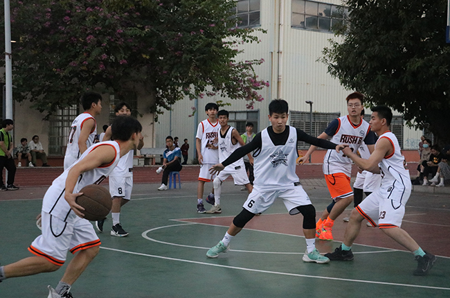 下半场19级环艺队已完全适应,他们稳扎稳打渐渐把比分拉近。比赛再次进入白热化阶段,赛场上战火燃烧,场下观众情绪激昂。赛场上球员们熟练地运球、传球,积极地拼抢、精准地投篮,场外的喝彩声也一浪高过一浪。双方选手奋力拼搏,努力实现更快、更强。