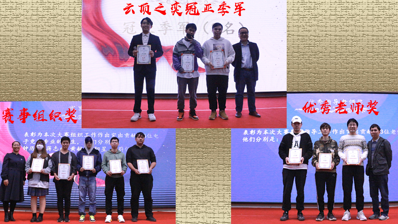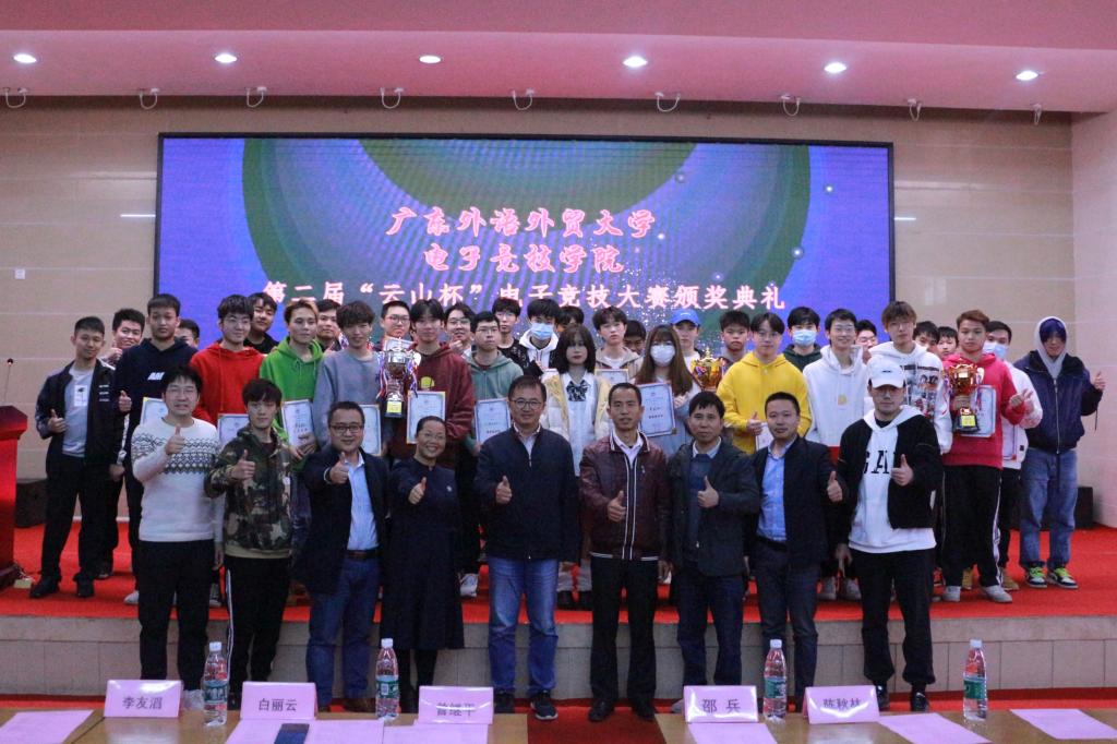 本网讯 凯旋的欢呼响彻校园,冠军的奖杯熠熠生辉。12月4日,由我院主办,电子竞技工匠培育工作室承办,电子竞技教育中心协办的第二届“云山杯”电子竞技大赛总决赛暨颁奖典礼在白云湖校区学术报告厅举行。学院领导高度重视,在抗疫条件不放松,抗疫思想不懈怠的情况下,学院党委书记邵兵、学工办主任陈秋林、继续教育中心主任白丽云、院团委书记赵正苗、电竞教育中心主任李友滔等及获奖师生代表出席了本次典礼。