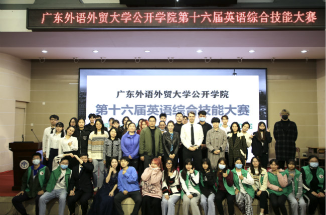 英语综合技能大赛提高了学生运用英语进行跨文化交流的综合技能,培养了学生创新、合作和实践精神,营造了良好的英语学习气氛,展示了我院的英语教学特色。公开学院团总支书记赵正苗,外语系副主任兼团总支书记李清伟,大学城分部副主任周联兵,艺信系学工办副主任洪永龙,工商系副主任唐丹丹,外教Mr.Spencer,各系团学指导老师及300余名学生到场观看。