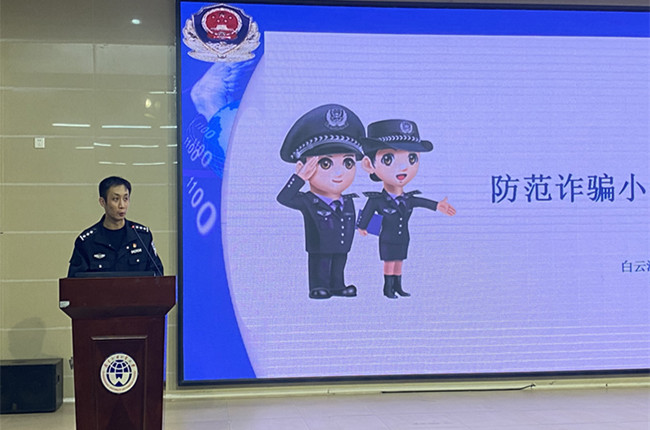 彭赵荣警官则对“冒充国家相关工作人员调查唬人”、“虚构中奖”、“征婚交友”、“网络招工”、“代购骗局”等几种常见的骗术展开说明,让同学们从鲜明的例子当中汲取教训,他说,骗子的诈骗手段层出不穷,千万不要相信任何“天上掉馅饼”的事情,一定要提高警惕,保护好自己。