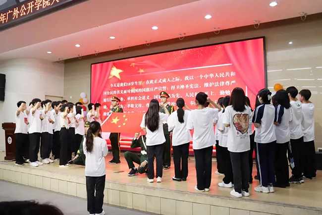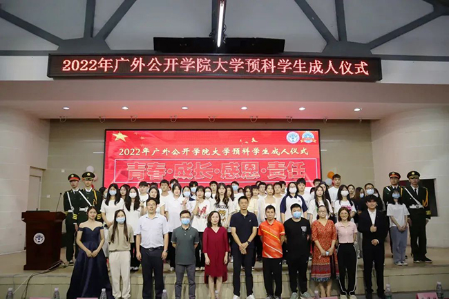 本网讯 5月31日,广东外语外贸大学公开学院大学预科部于学术报告厅举行2022年大学预科学生成人仪式,学院党委副书记曾继平、教务管理办公室主任樊春妍、学生工作办公室主任陈秋林、团委书记赵正苗出席,大学预科部相关工作人员、教师、辅导员、学生代表参加。