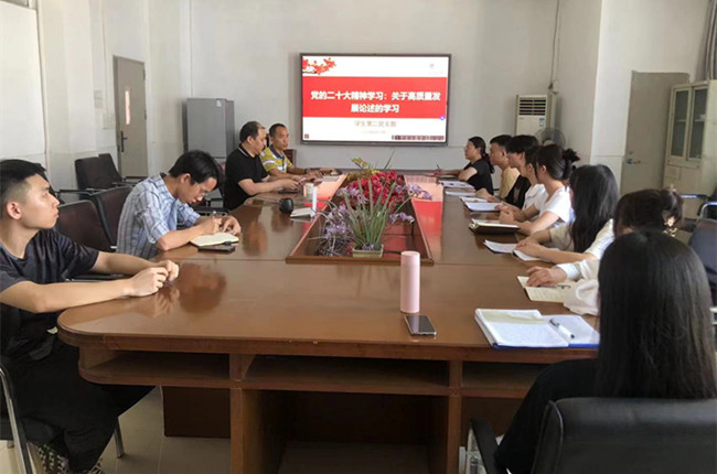 本网讯 6月11日下午,学生第二党支部在白云湖校区第三教学楼118室召开支部大会,学院党委委员、副院长李天明以“党的二十大精神学习:关于高质量发展的论述”为主题进行领学,支部全体党员参加,会议由支部书记陈秋林主持。