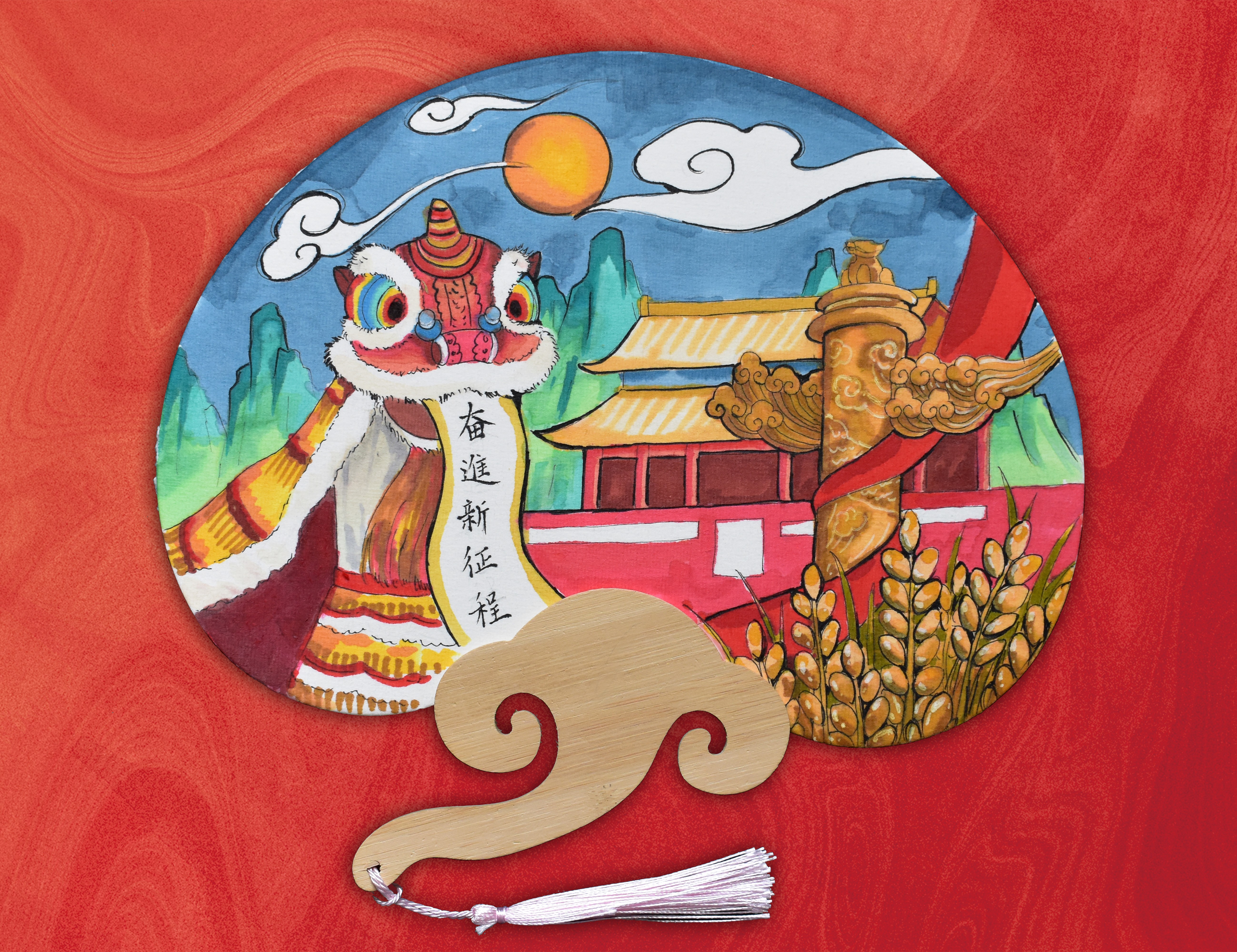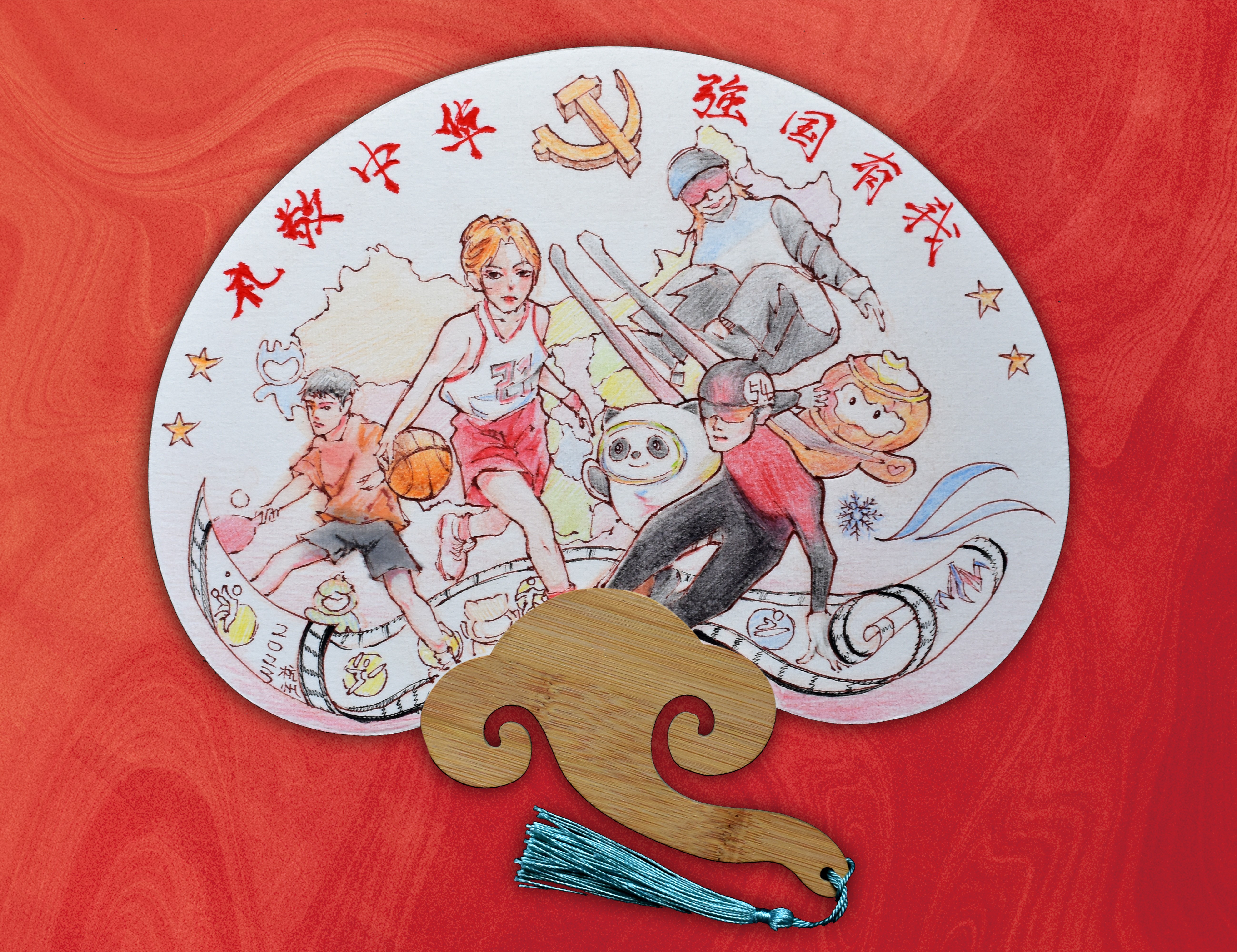 比赛现场,100名学生热情高涨,通过无限想象力和创造力,在16开宣纸团扇上尽情地勾勒、涂画、描绘,用画笔诉说对党和祖国深深的热爱和无限的感激之情。经过80分钟的创作,百余幅形式多样、内容丰富、立意鲜明的绘画作品呈现在大家面前,有象征中华民族的华表和新中国的天安门,有屹立永不倒的万里长城,有光辉党旗下的不忘初心,有英勇热血的革命斗争,有崇高伟岸的革命先驱,有五星红旗下的烽火传承,有杰出贡献的英雄楷模,有秀丽山河的旖旎风光,有日新月异的祖国新貌,有建设强国的远大理想,有团结奋进新征程的繁荣景象……最终评委组从思想内涵、创意构思、表现技法、视觉效果四个方面,评选出一等奖1名,二等奖3名,三等奖7名,优秀奖10名。