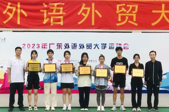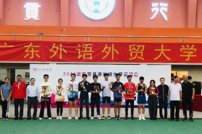 本网讯 11月24日、25日,2023年广东外语外贸大学学生田径运动会在白云山校区综合体育场举行。我院共派出31名选手参加16个项目。经过两天的比赛,学院运动员顽强拼搏、团结协助,展现我院学子良好的精神面貌,最终获得团体总分第5名暨体育道德风尚奖。
