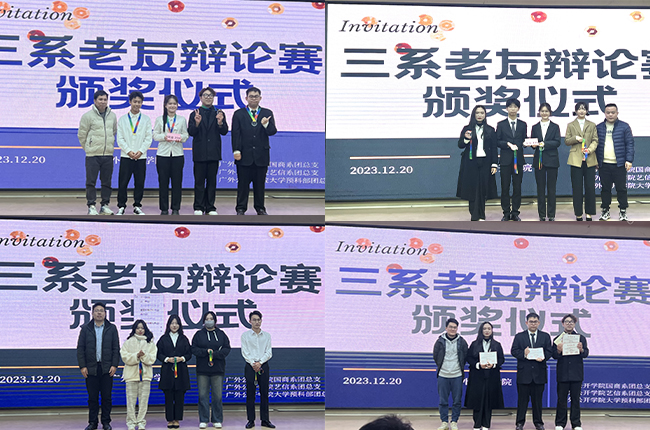 学院团委书记赵正苗总结,指出本次三系老友辩论赛在学院学生活动中再创新颖,体现出了各系团结一致,共谋发展的精神,增进系部交流,拓展师生友情,决赛辩题明确,符合时代发展要求,更展现出我院青年大学生语言辩论能力,希望各系继续保持创新思维,开展有利于学生全面发展的活动,助力学院各项事业高质量发展。