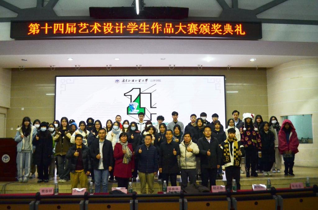 本网讯 12月21日晚,我院第十四届艺术设计学生作品大赛颁奖典礼在白云湖校区学术报告厅举行。颁奖典礼以“魅力艺术,创意无限”为主题,由艺术设计与信息管理系承办。学院副院长孟丁,教务办主任樊春妍,学工办主任陈秋林,团委书记赵正苗,国商系办公室主任朱名志,预科部学工办主任康明君,艺信系常务副主任丁建华,各系部教师代表及团学主席团代表等出席。