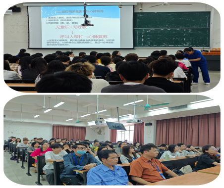 本网讯 4月—5月,学生第一党支部、学生第三党支部、学生第四党支部分校区开展支部共建系列活动,邀请大学门诊部医生团队开展《关爱生命•救在身边》应急救护知识宣教培训。大学城校区、白云山校区共120名师生参加了本次活动。