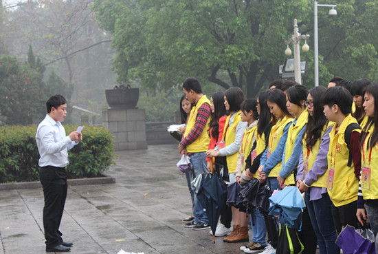 本网讯 为缅怀革命烈士,弘扬爱国主义精神,促进我校的精神文明建设,2013年4月2日,在辅导员李秋颖老师和张旭林老师的带领下,国际商务系第二党支部和国际商务系团总支学生会全体成员来到广州烈士陵园组织了以“缅怀革命先烈精神,弘扬爱国主义情怀”为主题的纪念活动。