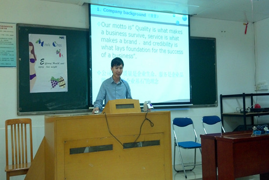本网讯 2013年6月8日下午2:30,由继续教育学院培训体系商务英语项目部举办的“商务英语第一届模拟营销大赛”在三教220拉开帷幕。参加活动的是商务英语项目部全体学生和老师,同时也邀请南航运营部培训学员前来观摩及担任评委。