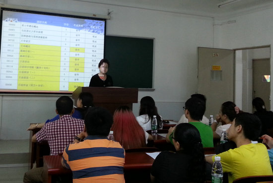 本网讯 9月8日下午,2013级日语浸泡营新生开学典礼暨新生家长座谈会在三教115教室隆重举行。20名新生、30多位家长及日语浸泡营全体教师齐聚一堂,共同拉开了2013级学生大学生活的帷幕。副院长任跃忠和日语系主任刘小珊教授应邀参加会议,日语国际部部长蔡京春老师担任主持。
