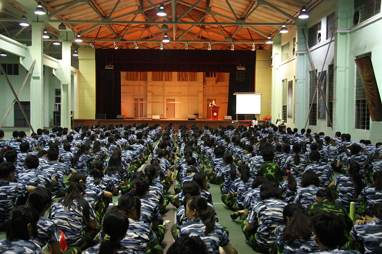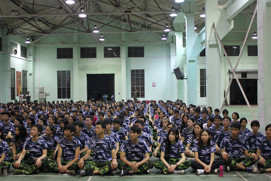 本网讯 9月13日晚,大学生卫生保健健康教育讲座在公开学院演艺中心举行。2013级全体军训新生在教官的统一带领下,聆听 2013级新生入学教育专题讲座。从9月9日至13日晚,公开学院演艺中心分别举办了新生心理适应教育、大学生安全教育、大学生卫生保健健康教育专题讲座在。