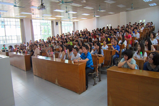 本网讯 2013年9月13日上午,通用英语部全体新学员及部分老学员共约300名同学在二教217课室举办了简单而别开生面的开学典礼,通用英语项目部负责人刘文明,通用英语项目部全体专职教师出席本次开学典礼。会议由蒋胜老师和A02的一名学员共同主持。