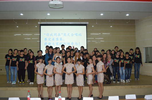 本网讯 为进一步加强学风校风建设,塑造优良院风,深入开展学风校风建设活动,提高班级的凝聚力,充分调动大(一)各班级的学习积极性和主动性,商务英语系于10月22日晚举办 “你我同在”英文合唱比赛决赛在学术报告厅奏响乐章。本次比赛诚邀辅导员周颖老师、“秋之声”往届冠军杨务本,“校园十大歌手”万杉、组织部部长马琪当任评委。