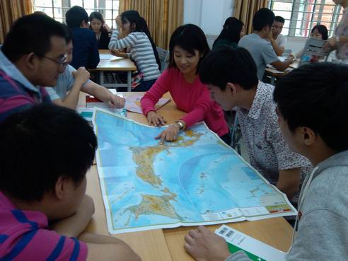 接着,交流小组的代表们和同学们分别分成8个小组,代表们与同学们面对面交谈,向同学们介绍日本有趣的文化,与同学们共同体验特色小游戏。在这种轻松愉悦的氛围里,大家渐渐放下羞涩,大胆地表达自己想说的东西,学到了许多课堂上学不到的知识,体会了不同国家同一节日的不同风俗习惯。同学们的积极参与也得到交流小组的肯定,交流小组的代表们纷纷表达了此行的喜悦之情。