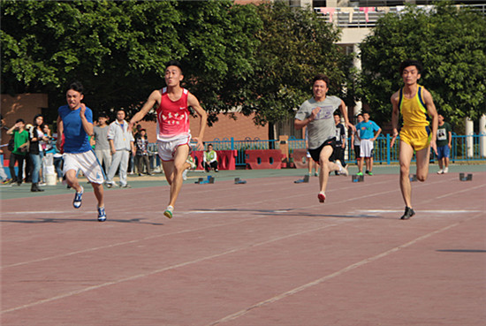 运动场永远是运动员们表现的舞台。开幕式结束后的运动场瞬时换了一番景象,参加比赛的运动员纷纷进入状态,以饱满的精神准备迎接挑战;观众席上坐满了观众,同学们纷纷拿出相机,期待着接下来运动员们的精彩表现。只听裁判员高喊“各就位,预备”,所有人都摒住呼吸,赛场顿时安静了下来,“啪”的一声发令枪响,运动员们便像离弦的箭一样向终点飞奔而去。尤其是男子100米决赛,其场面异常火爆,比赛在很多人还没回过神来时就结束了。当第一名快要接近终点时,所有人的心都不自觉的紧了起来。冲过终点了!欢呼声响彻云霄。