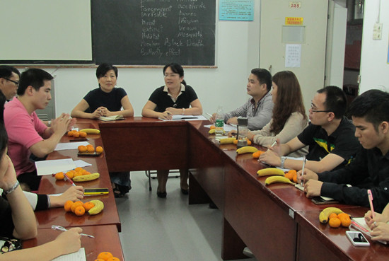 座谈会开始,巫盈通报了开学以来各班的出勤情况,希望同学们能严格遵守纪律,正确处理好学习、工作与生活的关系,珍惜有限的学习时间,尽量按时到校上课。与会代表就学生出勤状况进行了激励的探讨,有同学认为,出勤是学习态度问题,且成人学生学生必须靠自己的意志力来学习。有同学提出,可以采用分组考勤的办法,即组员未到,直接影响全组成员的成绩,以压力来促进同学积极到校上课等。随后,与会代表就本学期各位老师的教学方法、教材的适应性以及其他教学管理等方面提出了一些意见和建议,也让我们及时发现问题,并解决问题,进一步提高教学质量和提升教学管理水平。座谈会上各班代表都能踊跃发言,大家对我们本学期各方面的安排均表示比较满意,对教师的教学水平、教学态度、教学方法及学生管理等方面都比较认可。另外,针对同学们反映的一些问题,其中包括课室资源及设备的一些问题、个别教师课堂教学缺乏互动、个别教材过于简单等,与会老师认真听取了同学们的意见,并表示会及时跟进和解决这些问题。