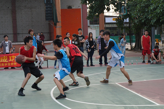 最后,由商务管理(1)班和市场营销班在篮球场上进行巅峰对决。在比赛之前参赛选手们都做好了热身运动,看他们矫健的身姿,自信的姿态,已经为夺下冠军做好准备了。在整个比赛进程中,篮球健儿们积极投入,全力以赴,挥洒着汗水。曾永业同学在比赛过程中凭着精湛的球艺带球过人,不断突破对方的防守,上篮得分。对方3分射手特别厉害,不断的把比分拉回来。双方伯仲之间,实力相当。场下的双方同学们也不示弱,为他们呐喊助威,球员们顽强拼搏,坚持不懈,比赛场面十分激烈,扣人心弦,精彩的表现赢得同学们的阵阵喝彩和掌声。