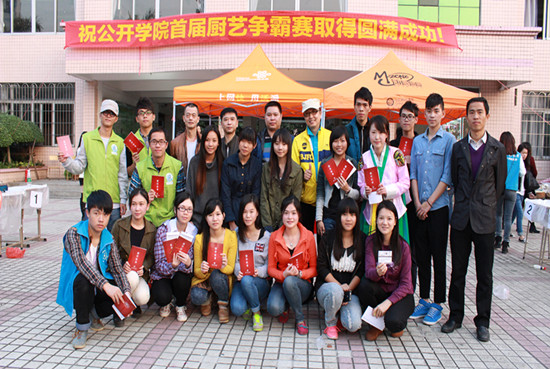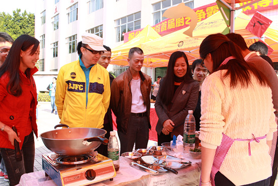 本网讯 12月5日下午,公开学院首届厨艺争霸赛在公开学院第一教学楼前的广场隆重开幕。院党委书记苏冬燕,学生工作办公室主任陈秋林出席了比赛。国家级点心大师、粤港澳十大杰出名厨、法国国际厨皇美食会金牌会员、广州白天鹅宾馆主厨丘卫国先生,耀华饮食集团黄埔天鹅堡、鹅仔饭店出品部主管陈凡东先生,广州逸林假日酒店中厨主厨招佳业先生,广州逸林假日酒店味部主管李德怡先生担任比赛评委。大赛由院团委学生会生活部主办,分教师组、团学官方组、学生个人组三个组别,共21支队伍参加比赛。