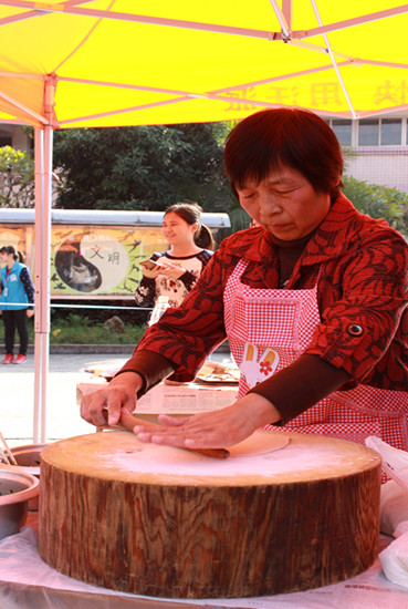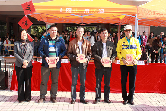 比赛开始之前,苏冬燕为四位评委颁发了聘书,并宣布比赛正式开始。首先上场的是教师组,教师组共有5支参赛队伍,比赛中,老师们展示了他们各自的高超的厨艺。从切菜到成品出炉,老师们都表现得淡定自若,来自河南的刘纪莲老师,对制作面食有丰富的经验,揉面、擀面、包馅儿、煎饼,一气呵成;张海燕老师的三人组,做的是客家丸子,制作过程非常复杂,三人分工合作,调味、捏丸子、上锅,整个过程紧张紧凑……半个小时后,一道道色香味俱全的菜肴呈现在评委和观众们的眼前:晶莹剔透的客家丸子、外焦内鲜的煎饼、风味独特的老娘叉烧、传统的东坡肉、酸甜猪脚、番茄排骨,每道菜都各具特色。最终,张海燕三人组凭借独特的创意、地方特色的材料、自家制作手法获得了教工组比赛的第一名,李凤清老师则以打破传统叉烧的做法,独家秘制的手法,受到了评委们的高度赞扬,夺得第二名。