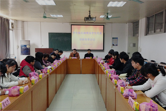 本网讯 1月10日上午10:00,学院在晨学楼203室举行学生院长助理及学生代表迎春茶话会。院长何勇斌、党委副书记曾健文、公开学院相关职能部门主任、副主任、慧友物业公司经理、学生院长助理及公开学院各系的14名学生代表参加了茶话会。茶话会由曾健文主持。